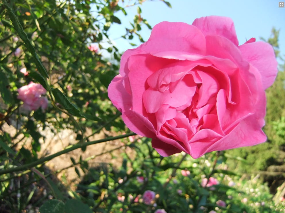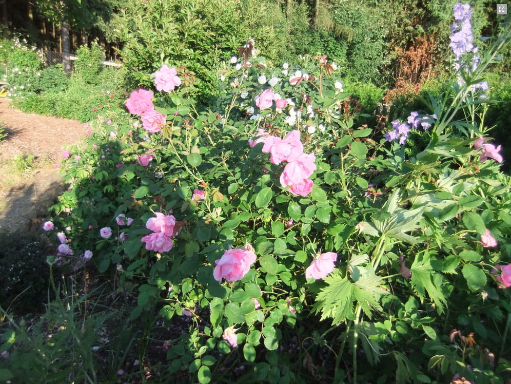 Róża burbońska osiągająca ok. 1,5 m wysokości