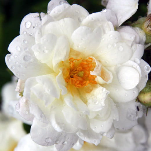 kwiaty: mocno pachnące, białokremowe, półpełne i pełne, kwitnie bardzo obficie w dużych bukietach, w VI-VII na 2-letnich i starszych pędach