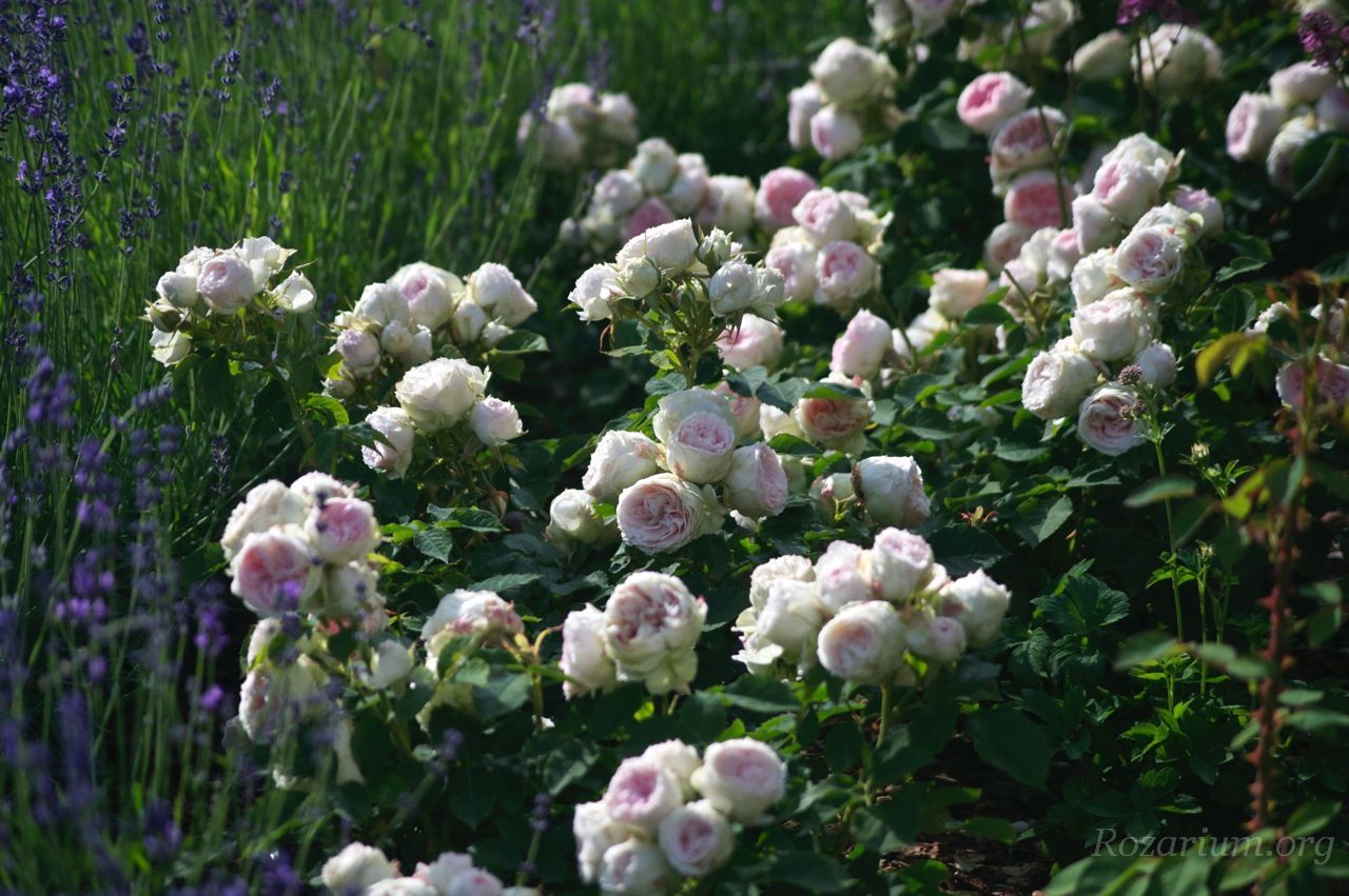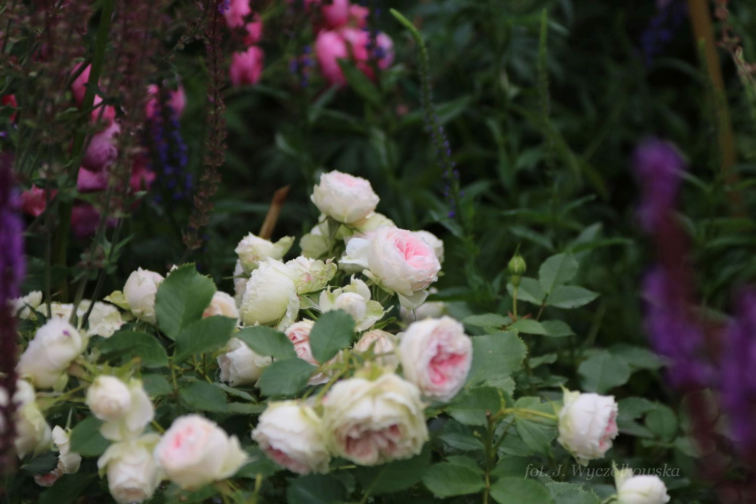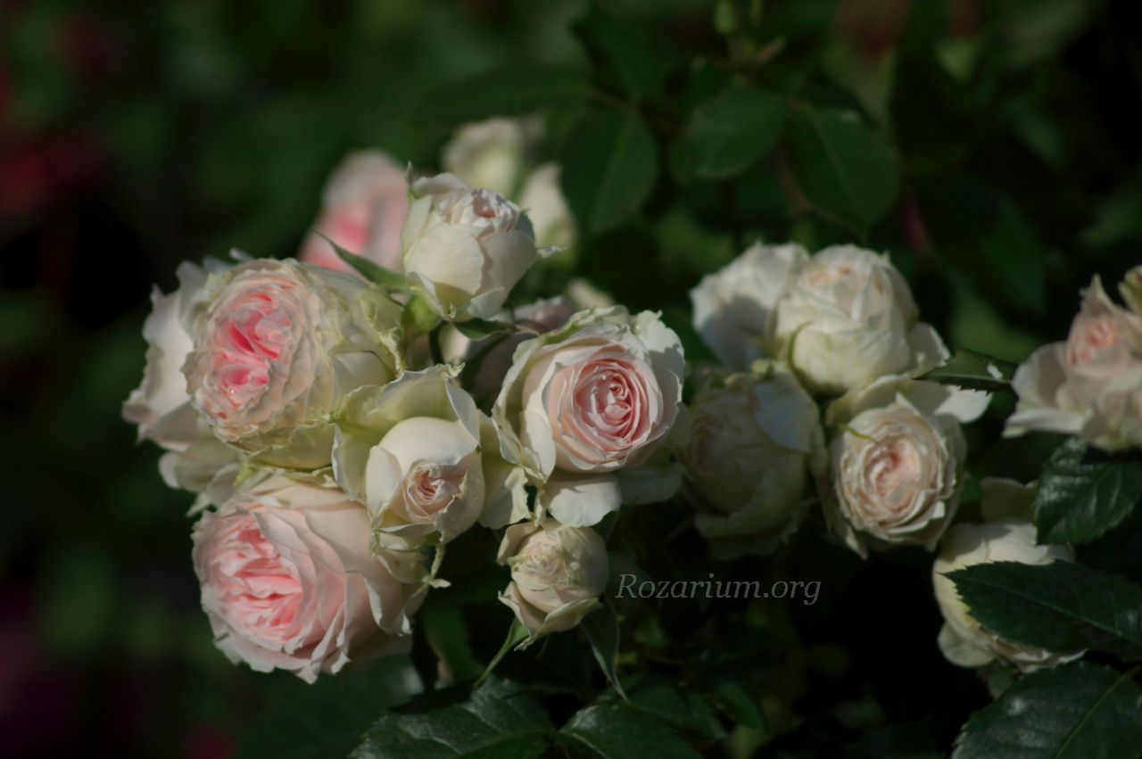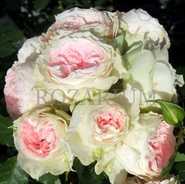 kwiaty bardzo pełne, kremowe i jasnoróżowe w środku